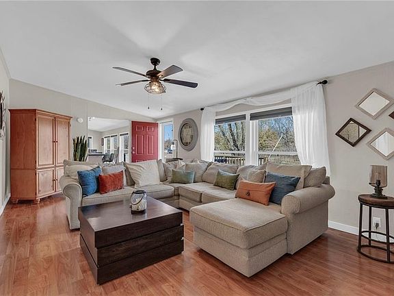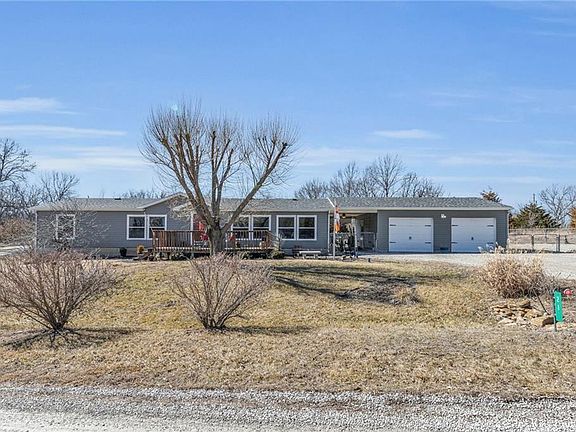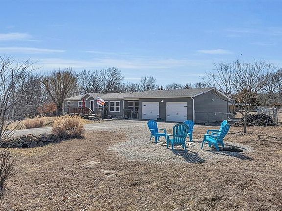 This well-maintained 3-bedroom, 2.5-bath ranch sits on a corner lot in Linn Valley Lakes and is ready for you to call home. Featuring a semi-open floor plan with oversized windows, this home is filled with natural light. Bedrooms are spacious and all 3 have walk in closets. Solid surface flooring runs throughout the common areas, and the extra-large eat-in kitchen offers an island and space for a full dining table. The kitchen flows into a breezeway leading to the fully fenced backyard and front deck.