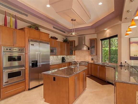 Striking custom turn-key furnished contemporary home in gated Cypress Heights. Situated on an elevated lot with awe inspiring southwest mountain views. The interior shows like a model with custom entry double doors with glass inlay, 16' coffered ceilings, Fleetwood quality walls of glass, Custom built-ins throughout, 24'' Travertine flooring & extensive marble & granite throughout. Gourmet kitchen with custom cabinetry, Viking appliances, double ovens, wine cabinet, center-island and large breakfast bar. Walls of glass off the open great room and master suite open to the incredible indoor/outdoor living. Soak up the rays on the sun-drenched front loaded courtyard with pebble finished saltwater pool & spa, tanning shelf & tranquil waterfalls. In the evenings, enjoy the phenomenal sunsets our desert has to offer while grilling on the built-in outdoor kitchen. With three spacious bedroom suites & separate office suite with Murphy bed. Truly an entertainer's delight and great value.