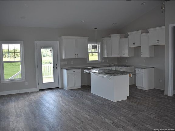 Inside you will find 3 bedrooms, 2 baths, and a large open floor plan. The kitchen has an island and custom cabinets with granite tops, eat in kitchen with backyard access and a window over the sink! LVP floors, laundry sink in the utility room off the garage entrance. Cathedral ceilings, updated recessed lighting throughout, ceiling fans, top of the line metal roof, gutters, large deck on the rear. Just move in... the rest is perfect! A local builder who takes great pride in his product! You won't be disappointed! Corner lot with a backyard that overlooks a farm with a pond. Rural location close to town and amenities; another great feature and sought after.