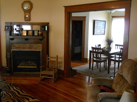 This beautiful home features a spacious floor plan that includes a living room, family room w/gas fireplace, dining room, 4-5 bedrooms, 2 full bathrooms, large entryway, lots of natural woodwork, pocket doors, large kitchen with hickory cabinets w/corian countertops, newer roof, hardwood floors, full unfinished bsmt, corner lot with a huge 2 car detached garage that's heated and cooled that's includes and upstairs that would make an awesome man cave or could be used for multiple things. A Must See