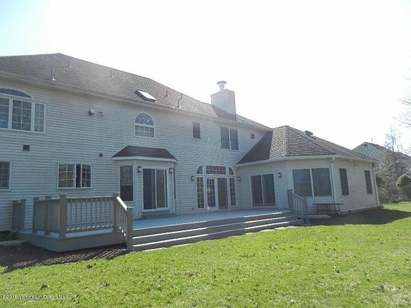 Freehold P.O.07728.Spectacular Custom Built Col on a cul-de-sac loc in Northern Howell.WHOLE HOUSE GENERATOR! Incls an entire wing complete w Living area,Kit,1.5 Bths,laundry center & huge separate BR w direct access to trec deck & luxurious gardens.Now the main house has magnificent mahogany flrs;marble entrance 2 story foyer;Upper Br's (2 with suites;Master suite complete with gas F/P;Master ''Spa'' w 2 sinks & sep shower and direct access to sitting rm complete w another WIC++;Multiple High Hat lights;recently installed Tiles Floor in Kit;upgraded ''42'' maple cabinets + pantry;granite;Stainless steel appl;3 car garage;sprinklers;3 zone A/C;3 zone hot water baseboard heat; French doors;custom window treatments;Park-like setting.A true mult-generational home or whatever you need!WOW!! Built in pool with resort backyard