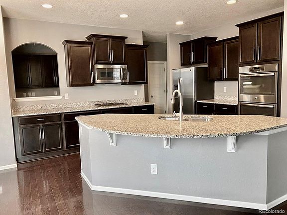 Amazing opportunity. This desirable DR Horton home boasts a Bright Open layout. Beautiful hardwood floors on the main level and a Wonderful Gourmet Kitchen featuring Stainless Steel Appliances including Gas Cook-Top, Refrigerator and Double Ovens! You'll love the Oversized Island with Granite Countertops. The Built-in Study and Mudroom area off the kitchen is so convenient! Plus there is Flex Space on the Main Floor for a Full-size study if desired. Enjoy the Generous Sized, Master Suite with Light 5-Piece Bath and Massive Walk-in Closet with Built-Ins. You will love the convenience of the Upper Level Laundry Room complete with Washer, Dryer and Shelves for Storage. There are three additional ample bedrooms, one with a walk-in closet! The Spacious Rear Patio overlooks open space and is perfect for entertaining with Lights and Canopy included. Enjoy the Gorgeous Erie sunsets from your front balcony! The Basement is complete with Rough-in Plumbing for future finish expansion. The attached three car garage has a built-in bench and shelves for storage. Commuting to Denver, Boulder or Ft. Collins is easy! This home is conveniently located within walking distance to Red Hawk elementary. Please join us here in Erie which is a wonderful family community full of Trails and Parks. This home will not last long!