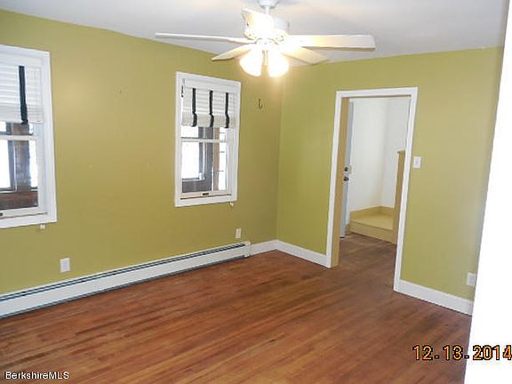 Three bedroom one bath charmer on a quiet dead end street with three season front porch. The living room has wood floors with a lighted ceiling fan. The dining room has a ceramic tile floor also with a lighted ceiling fan. The kitchen is of good size with good cabinet space along with a pantry that also has the washer and dryer. The second floor has the three bedrooms and the renovated full bath