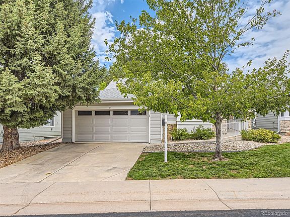 PRICE REDUCED, plus, plus, plus Sellers are offering a $5,000 CREDIT TOWARD BUYER'S CLOSING COSTS. Don't need closing costs? Take the additional $5K off the purchase price. This 2,053 square foot, 2 bed/3 bath home, located in a gated community, lives like a ranch and offers EXPANSIVE GOLF COURSE VIEWS! Everything you need is on the main level. Formal living/dining rooms. If you prefer an office, the space is yours to decide. Head toward the hub of the home (kitchen/family room), and your eye is immediately drawn to the golf course. Spacious kitchen with breakfast nook opens into the family room. Easy access to the newly refinished 500+ square-foot redwood deck. With Colorado's 300 days of sunshine, this outdoor living space won't go unused. Whether it's dinner with family/friends, an outdoor living room with firepit, or an overstuffed chair to cozy up with a book, there's room for it all. It's peaceful and quiet, too. Main level features the primary suite w/5-piece bath and patio access, secondary bedroom with full bath and main floor laundry. Upstairs is a loft with 3/4 bath that overlooks the family room. It is a great space for a guest bedroom, craft/hobby area, office or whatever fits your lifestyle. New carpet on the main level, plus extensive use of hardwoods. Gas fireplace with brick surround. All appliances included. Skylights. Unfinished basement. 2-car garage. New gutters. Roof replaced (2015) and covered by Gleneagles Village HOA. Wheelchair accessible ramp. NO RENTALS ALLOWED. 55 and older community. (One person must be 55 years or older; no residents under 16.) Gleneagles Village HOA includes clubhouse, private pool and other amenities. Annual HRCA fee is for minimal services. (Fee for HRCA rec centers is available but optional and not included in the annual HRCA fee.) This home does need updates, and it is priced accordingly. (Compare to homes that sold for $800K.) So, bring your dreams and your designer! But don't miss out on this PREMIUM LOCATION.