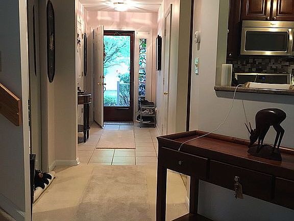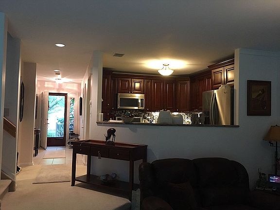 Well maintained townhouse that backs up to woods for privacy/no neighbors behind you. Fully upgraded kitchen with add'l counter space and storage with sliding drawers; upgraded bathrooms (master bath has 36"H double vanities with granite), crown molding in LR, add'l bedroom/office, plenty of shelves and storage. New hot water heater. Upgraded with water proof vinyl flooring through out first floor. 3 toilets brand new.