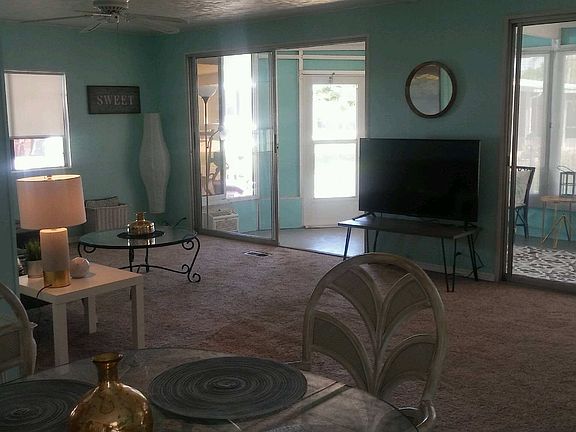 Welcome to sunny Florida where you will find this bright, cheerful 2 bedroom, 2 bath home oozing with potential at a great price. It has an open floor plan with a lovely Florida room with sliders which makes it a great place to relax after a busy day. This home offers a refrigerator, range, microwave, washer and dryer. The floors are some carpet and wood laminate. There is an attached storage shed and a large carport. One important addition is that there are no rear neighbors. This home will be lovely for someone who would like to give it some tender loving care. Located in a great park that offers 5 clubhouses, 5 pools, shuffleboard court, library, billiards, game-room and a fitness room and much more. There is also a large dog park since this wonderful park allows 2 pets up to 75 pounds. This home is close to I-75 and an hour from the Tampa airport and 30 minutes from Sarasota airport. Because it is centrally located, it is near Restaurants, shopping plaza's and medical offices. Call me to view this home, you will not be disappointed, this might be exactly what you are looking for. All listing information is deemed reliable but not guaranteed and should be independently verified through personal inspection by appropriate professionals. Integrity Mobile Home Sales cannot guarantee or warrant the accuracy of this information, measurements, or condition of any property. Measurements are approximate. Lot rent is subject to change.