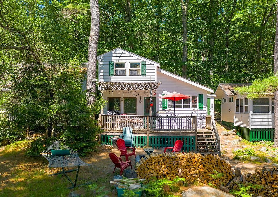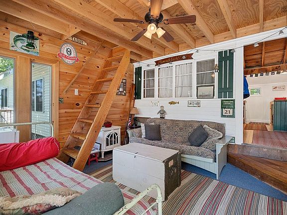 Soak up summer in this classic cottage in the Tallwood Condominium Association on Sebago Lake. Built in 1940 and used as a summer camp for many years, this delightful cabin features a quaint kitchen with counter seating overlooking a living room with an attractive new fieldstone gas fireplace and built ins, a family room with a gas stove, a bedroom and a bathroom with a shower; a warm and inviting retreat from a day on the lake. There is an additional sleeping area and half bath in the loft upstairs. Enjoy the large deck and pergola overlooking the water, access to a sandy beach, one boat slip, two moorings, privileges at neighboring Migis Lodge's baseball field and a shared shed for waterfront activity storage. Time to make some memories!