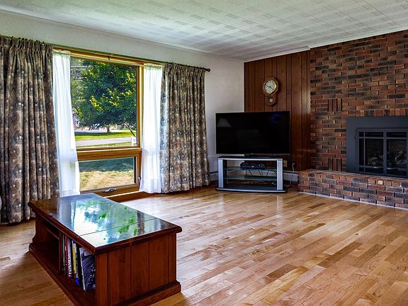 - Ceiling Fan(s), Dining Area, Hearth, Kitchen Island, Living/Dining, Natural Light, Natural Woodwork