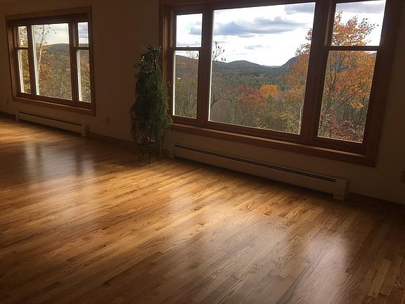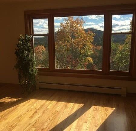 A VIEW TO TREASURE every single day. Yes, you can see for miles and miles. This serene mountaintop retreat is tucked away for privacy, and the sunshine streams through south-facing windows all day long. Surrounded by nature, with neighbors unseen, amidst gardens and fruit trees. The private, long driveway takes you to the privacy you've always wanted and enables you the perfect perch for viewing hawks and eagles. Super privacy, views, apple, pear, plum trees, a fenced yard for your pet. Gleaming hardwood floors and an open floor plan. First floor includes a bedroom/den and laundry. The 960+- square foot lower level features a wall of windows with very nice long views. About 25 minutes to Northampton and about 15 minutes to Greenfield and Amherst. Cable internet and TV available.