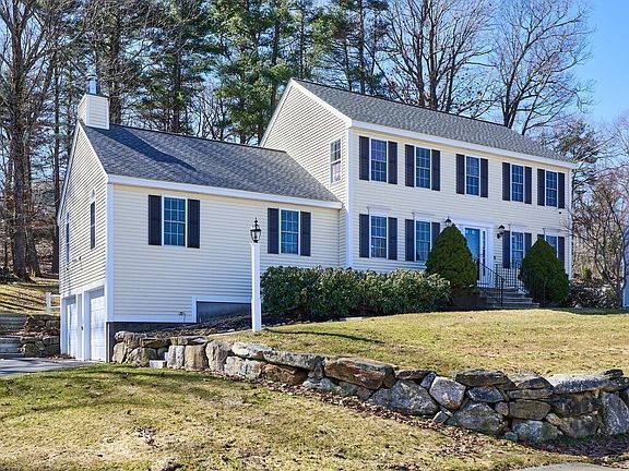 Welcome home! Charming Colonial in the Wachusett school district close to the center of town. One of the only town water/town sewer developments in Rutland! Host guests in your spacious kitchen featuring granite countertops with tile flooring. The center island is perfect for informal seating plus a separate dining area. Host family gatherings in your formal dining room with Hardwood floors adjoined to your massive family room offering cathedral ceilings, fireplace and separate wood stove. An additional room makes a great office,den or sitting room. Your second floor offers 3 bedrooms including front to back Master Bedroom with private bath and walk-in closet. The upper level is rounded out with two more generously sized bedrooms featuring wall to wall carpet. Massive deck with a hot tub and a huge backyard to entertain outdoors. Beautiful shed with a loft in the back yard for extra storage. Walk-out finished basement with easy entry into your two car garage.