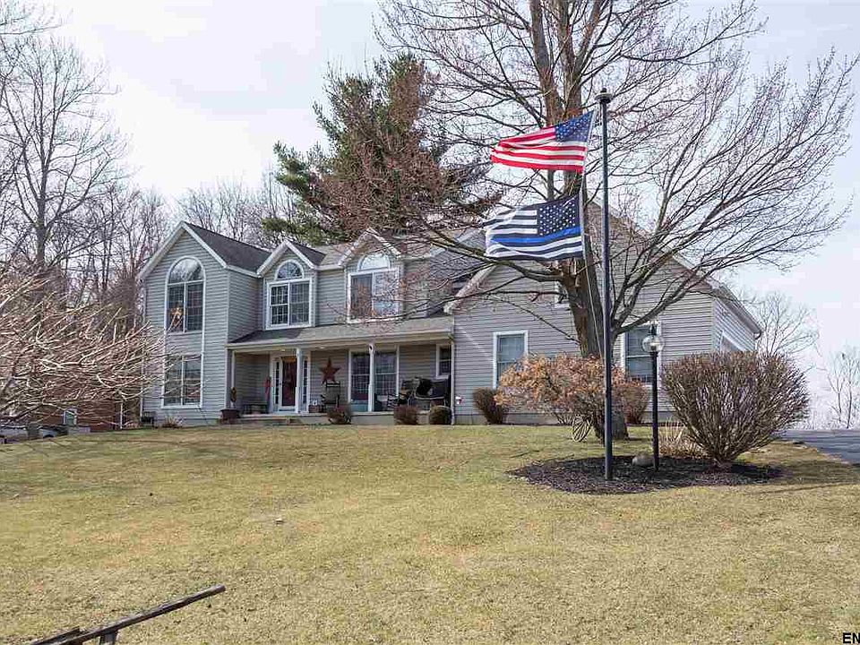 ~Home Has Been Where The Heart Is~Lovingly maintained-originally owned cul-de-sac nestled, In Heart of Town, is this Sun-drenched 4 Bedroom 2.5 bath Custom Home. Open Concept floor plan, 1st floor filled w/Pretty Birch Hardwoods, Family Room w/gas fireplace, Kitchen w/Hickory Cabinets, Formal Living & Dining Rm, Laundry Area too! 2nd Story has 4 generous sized bedrooms, Master suite w/fplace Multifaceted Bonus rm has exit staircase to garage.Outdoor Entertaining w/decking & In-ground Pool. Exc. Dining Light
