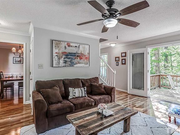Beautiful cul-de-sac home in highly desirable Woodcroft neighborhood. This traditional 3BD 2.5BA home features an eat-in kitchen with vaulted ceiling, skylights, and stainless steel appliances. Gleaming laminate floors welcome you into the living room and french doors open up to a fenced-in backyard. Relax in private outdoor deck with a treehouse-like feel. Enjoy spacious bedrooms with woodsy views and a renovated modern master bathroom. Close to popular nature trails and easy access to RTP, Duke, UNC.