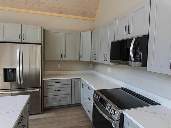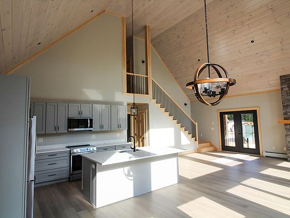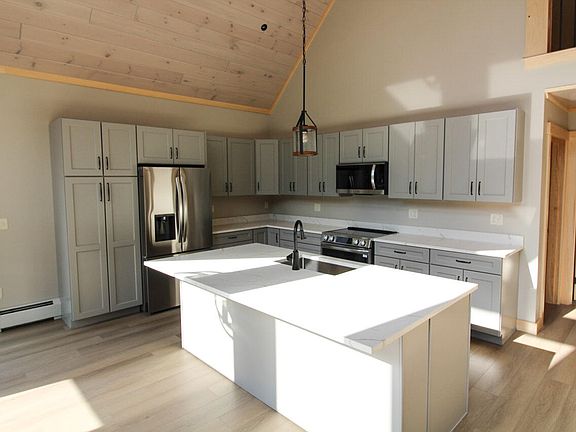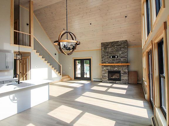 Set for completion in August 2024, this newly constructed cape boasts a lavish four-bedroom, four-bathroom layout featuring captivating vaulted ceilings, a gas stone fireplace, and expansive floor-to-ceiling windows. With a footprint larger than typical at 32 X 40, spanning over 2,600 Sq. Ft across three finished levels, it offers ample space for living and entertaining. The main level is optimized for accommodating large furniture, including a spacious living room, a sizable dining area, a custom-designed open kitchen, and an ensuite bedroom. The upper level hosts two bedrooms with expansive picture windows and a shared full bath, while the lower level includes a mudroom, family room, an additional bedroom with bath, radiant heat, and a utility room. Interior highlights encompass pine boards, granite countertops, and tiled surfaces, among other premium finishes. The property boasts ample space around it thanks to the lot being cleared, providing abundant natural light from all angles. Exterior finishes include vertical engineered wood siding for enhanced durability and minimal upkeep. Nestled in Thundersnow, this property offers privacy, breathtaking views, and convenient proximity to Bethel and Sunday River.