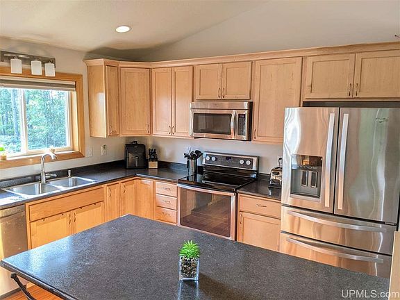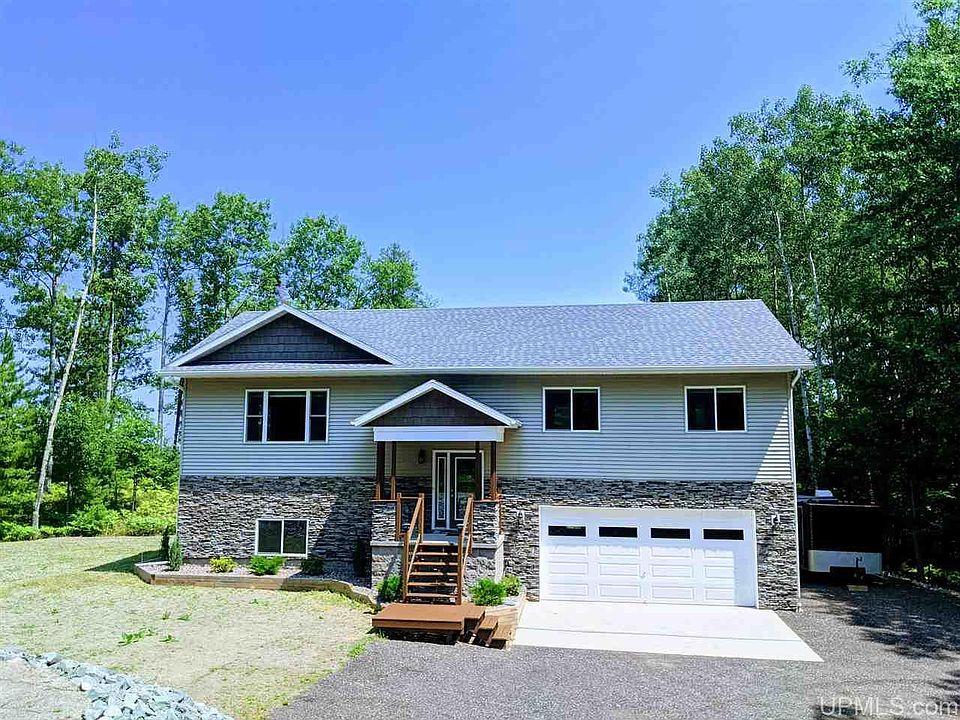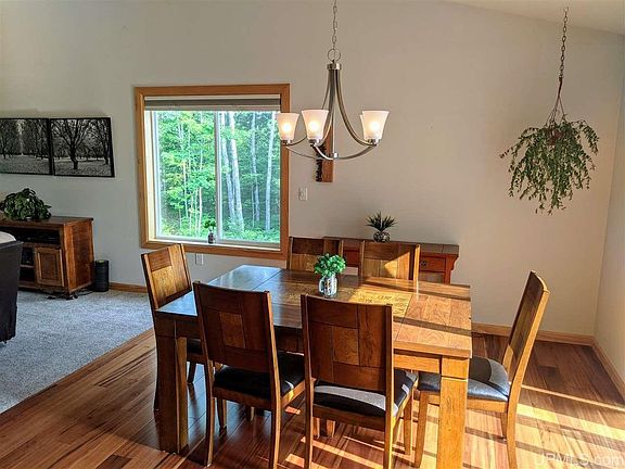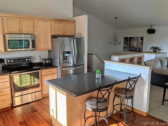 This almost new home has everything you would want living in the country, but is only 6 minutes to MQT. Enjoy the majestic views of this beautiful wooded lot off your large deck! For the bike enthusiast you have your single track on your property. Close to biking, skiing and walking trails. Township ball parks, soccer fields, disk golf and playgrounds near by. Meticulously maintained. Lower walk out level could be used as family room, but could easily be a 4th bedroom and a family room. Large windows let in lots of light for the plant lover. Solid wood doors and trim! Views of Lake Superior, Whitefish and Shot Point from rear of home. Deer and turkeys walk through the property daily.