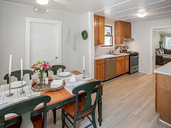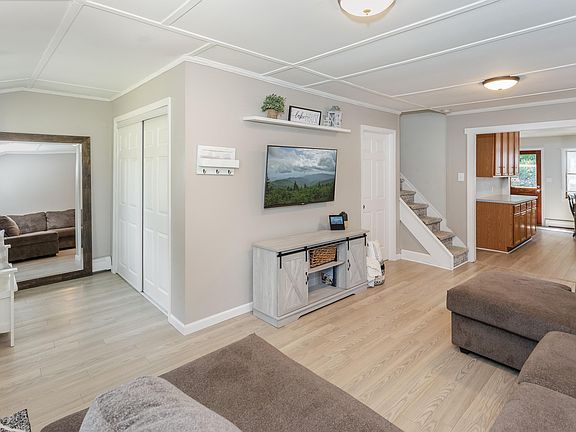 Cape style home in the Indian Lake section of town with 3 bedrooms, 2 remodeled baths, newer flooring, den, open floor plan, full unfinished basement with great potential, fenced in yard with playset paver patio and newer roof. Plenty of parking and room for expansion.