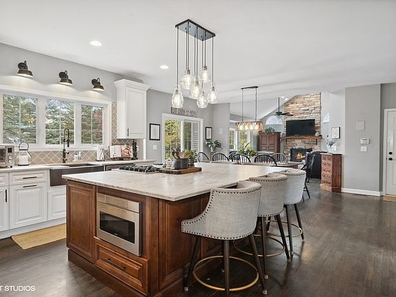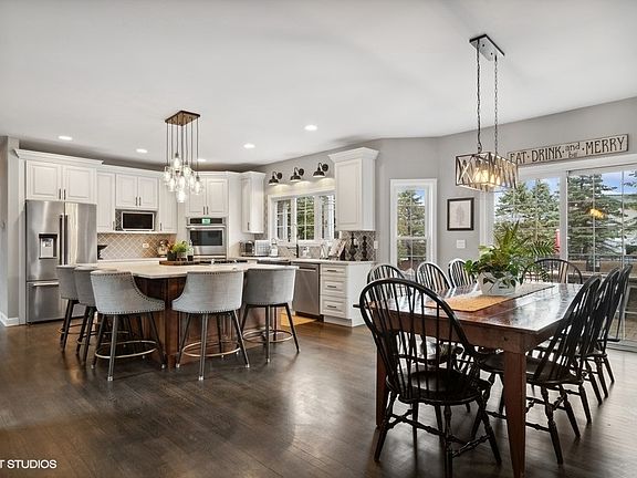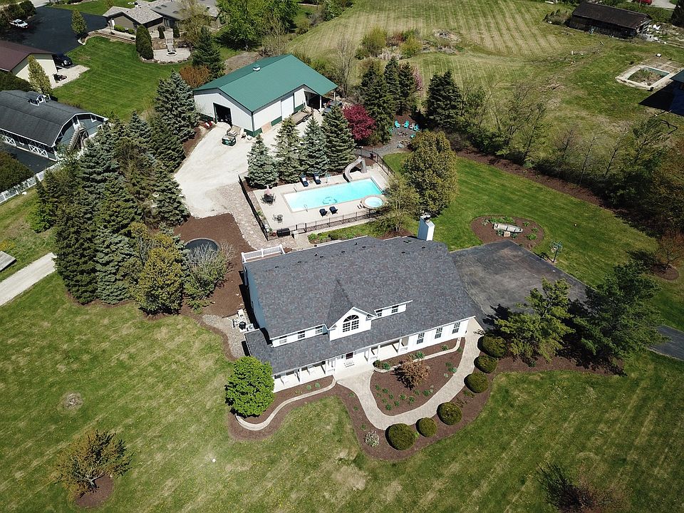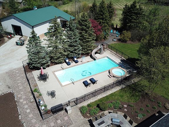 Nestled on 3 acres of land, this stunning property has everything you could want and more. With over 3,000 square feet of living space, this home is perfect for those who love to entertain or enjoy a private oasis. Additionally, the property boasts a 42 x 60 Morton Outbuilding that is insulated and heated with concrete floors, and its own driveway which is a rare find! The kitchen is a chef's dream, recently remodeled with gorgeous Quartzite countertops and top-of-the-line Jenn Air appliances, including a massive kitchen island with seating on two sides. The master bath has also been tastefully remodeled to provide a luxurious and relaxing space with a door to an upper level private deck that is built and wired for a hot tub and offers amazing views! The finished basement is perfect for entertaining guests or for use as a private retreat, with a wet bar that includes a built-in mini fridge, a rec/TV/gaming area, workout space, a flex room currently used as a bedroom, and a half bath. Step outside to your backyard oasis, designed for outdoor entertaining or personal relaxation. The stunning built-in heated Sunco "San Juan" fiberglass pool (16' x 44') and hot tub with slide and basketball hoop provide the ultimate in relaxation and recreation. The amazing stone outdoor kitchen features a built-in fire table, perfect for grilling and dining al fresco. The awesome firepit area gives you the feeling of being in the North Woods! Best of all with this property, there's no HOA! Don't miss out on this incredible property - make your move today and schedule a viewing.