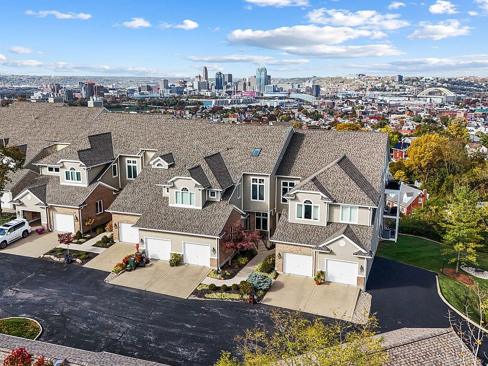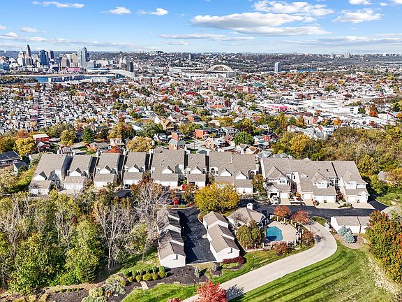 Welcome to this luxurious 3BR, 3BA condo boasting sweeping Cincinnati skyline views. High ceilings and beautiful hardwood floors enhance the open-concept design, creating an elegant setting for effortless entertaining. The chef-ready kitchen offers solid-surface counters, wood cabinetry, a butler's pantry, and all new appliances. The refined primary suite features a window seat, walk-out access to the covered deck, a double-vanity ensuite with tile shower and soaking tub, and a walk-in closet. Main-floor laundry elevates the ease of one-level living. Enjoy two covered outdoor spaces, perfect for savoring the views. The finished lower level includes a wet bar, full bath, bedroom, and a flex room ideal for a studio, playroom, or home office. Parking is a breeze with a 1-car attached garage plus a 1-car detached garage-perfect for storage or a second vehicle. Community amenities include a clubhouse and pool. Tucked away on private grounds with green space yet moments from premier shopping and dining in Newport and downtown Cincinnati. Units rarely become available here-don't miss the opportunity to experience elevated, low-maintenance living!