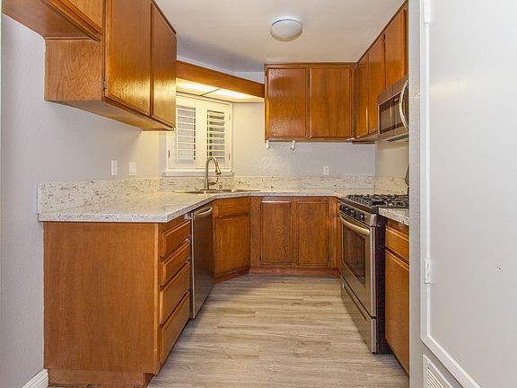 This single-story Pomona condominium offers a detached single car garage, a gas fireplace, stainless steel appliances, granite kitchen countertops, a private back patio, and gas heating. You can instantly unlock and tour this home any day of the week from 6am to 9pm (New Year's Eve: 6am-3pm), no appointment needed. Plus, every Opendoor home comes with a 30-day buyback guarantee. Terms and conditions apply.