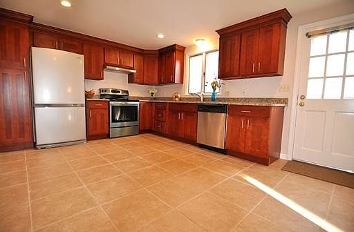 This lovely maintained split entry home sits in a desirable Cul-de-sac quiet street. It features a sunny, fireplaced living room, spacious eat-in NEW KITCHEN, newly updated bathrooms, three good-size bedrooms, with cherry hard wood floors in living room and bedrooms! The fully finished lower level has a bright family room with 2nd fireplace, a play room, and an office with all BRAND NEW CARPETING. NEW PROFESSIONAL INTERIOR PAINTING! Fenced leveled private back yard! Buderus high efficiency heating system was installed in 2009! New and additional insulation for the whole house including attic in 2011. Easy access to highway 93 & 128 and Lake Qaunnapowitt.