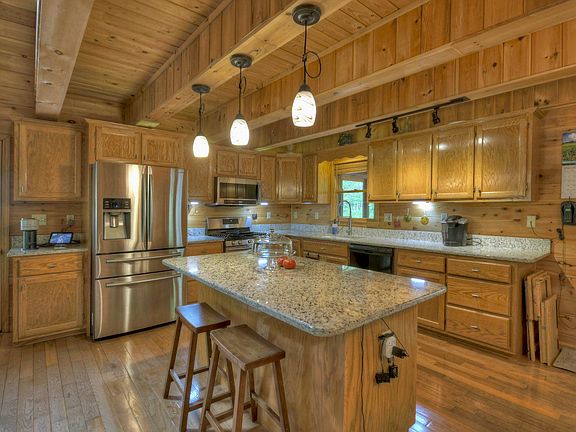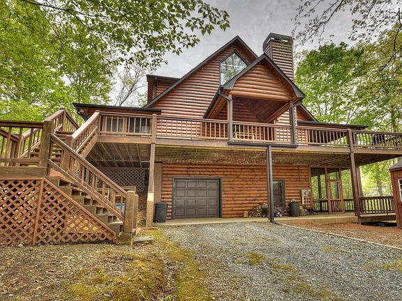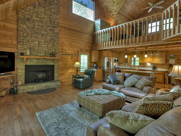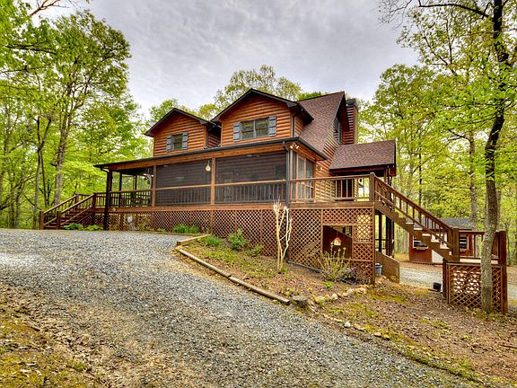 Amazing cabin w/ a park like setting! Easy paved access in the desirable My Mountain community. Spacious eat in kitchen w/ new granite countertops, new stainless appliances & adjacent dining area. Large great room w/ soaring ceilings, stacked stone fireplace w/ wood stove insert & access to a large covered porch. Master on main features french door balcony access, ensuite bath w/walk in shower & walk in closet. Additional 1/2 bath rounds out the main level. Travel upstairs to find a large loft area perfect for home office or additional sleeping. 2nd master w/ensuite bath, stone shower & balcony access. Full finished terrace level offers sitting room, full bath, laundry room & the option for an additional bedroom. Large level lot features fire pit area, lots of useable space & she shed w/electricity. Basement garage for additional storage, 2 screened porches, dual fuel heating system, the list goes on. Furnished.