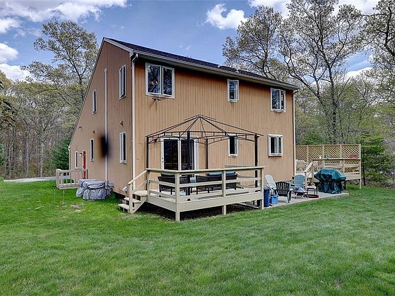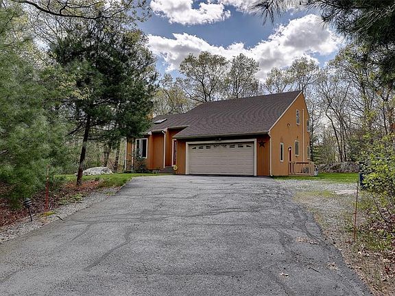 First time available, this contemporary custom built feature include first floor hardwood flooring, open design with cathedral ceilings with exposed beams throughout the main living are. Fire placed living room. The newly remodeled kitchen feature granite counters and center island with subway tile back splash and stainless steel appliances. There is a large first floor master bed room with walk in master bath and sliding doors that open to a beautiful deck overlooking the back yard. Two more large bed rooms suites are on the second level each with access to a full bath. This home sits on over 2 acres of beautiful greenery allowing serene privacy. This is a must see property.