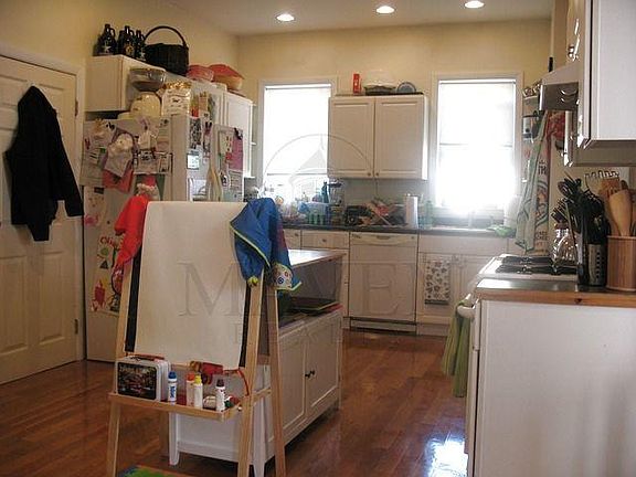 Amazing 2 bedroom apartment. Includes a modern eat-in kitchen with dishwasher and disposal, a separate dining room and living room, and a private deck. Hardwood floors throughout, high ceilings, in-unit laundry and extra storage in the basement. Do not miss out on this fabulous apartment. There are 2 off-street parking spaces included in the rent, and a shared back yard. Cats are ok. 12 month lease