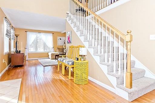 Move right in to this well maintained home on a private road, last house in the cul de sac. First floor offers easy flowing floor plan. Two story foyer with open staircase and large palladium window bringing in lots of natural light to the whole house. Living and dining room feature hardwood floors and LED recess lighting. Kitchen is appointed with stainless steel appliances, tile floor, tasteful pendant lighting, breakfast bar, and updated quartz counterops. Exterior access from kitchen brings you to landscaped backyard and beautiful stone patio overlooking a trickling brook with a built in firepit. Second floor has 3 bedrooms with wall to wall Berber carpet. Master bedroom boasts cathedral ceiling with skylight, master bath and walk in closet. Finished walk out basement gives you extra living space for play room, exercise room or family room. Easy manageable lot at the end of a cul de sac. Recent upgrades include new roof in fall of 2014 and a on demand tankless hot water heater.