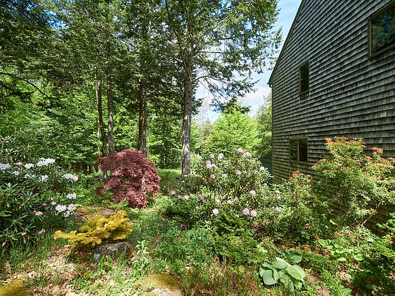 Welcome to Tuva Trail, where one can find serenity amongst 10+/- acres of thoughtfully developed landscaping inspired by the current owner's previous living across from the Brooklyn Botanical Garden. Set well back from the main road, this unique property features an efficient cedar shingled 1 bedroom 1 bath home built in 1995. Natural warmth and light can be enjoyed through oak and white pine floors, Andersen windows with open views to the beautiful gardens, ten foot ceilings, many antique features, and a cozy soapstone woodstove. An on-demand water heater and 2014 installed leachfield add to the improvements on this well cared for property. The four season gardens have been thoughtfully developed throughout the rolling topography to blend harmoniously with wildflowers, rock gardens, and other perennials. Eight different types of Japanese maple, European beeches, Katsura, Dawn Redwoods and other unique plantings throughout create a truly peaceful setting. Complementing the house is a separate redwood sauna and shared pond with a 20'X20' dock. From the total 12+/- acres, the owner is subdividing off 2 acres where there is a cottage the owner will retain and live in at periods throughout the year. The two properties currently share the well and septic systems, as well as shared use of the pond.