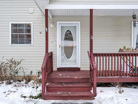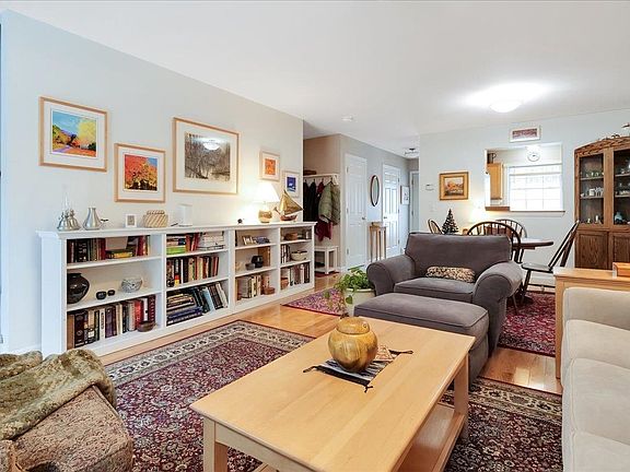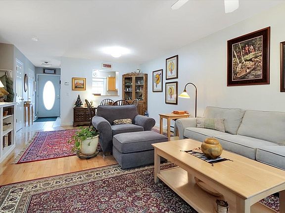 This move-in-ready St. Albans townhome in the desirable Twin Court Association is awaiting a new owner! Nestled at the end of a quiet street less than 5 minutes from the center of St. Albans City and I-89, this property provides the best of low-maintenance living in a great location! Upon entry from the covered front porch, be drawn into the bright and spacious open-concept living/dining room with hardwood floors. Perfect for entertaining, a sliding glass door opens to a back porch overlooking the private and peaceful backyard. The kitchen features tiled floors, plenty of cabinet space, a GE microwave (2022), and stainless steel fridge (2022). The 1st floor also includes a renovated ½ bath with a newer vanity and toilet (2022), as well as a walk-in pantry. Upstairs, enjoy two well-sized bedrooms, one of which makes for a great office if needed, with plenty of closet space and natural light. The primary bath renovated in 2022 completes the 2nd level, featuring a stunning step-in shower with custom floor-to-ceiling tile, a Curtis vanity with custom countertop, fresh paint, and laundry access. In the walk-out basement, enjoy a large bonus room, storage space, and access to the backyard which offers a cement patio. Additional improvements/features include a security system, fresh paint throughout the basement and 1st floor (2022), both porches re-stained in 2022, an auto-open detached 1-car garage, and a welcoming cat and dog-friendly HOA policy!