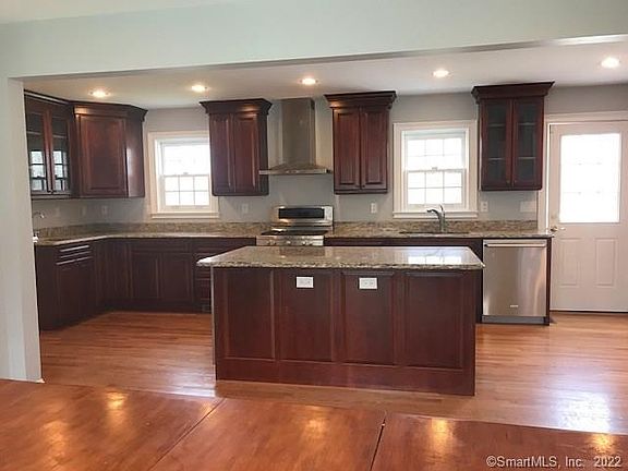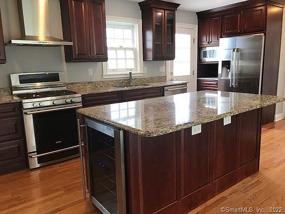 Beautiful colonial in one of the best neighborhoods in Stamford. Complete privacy in desirable cul de sac, yet minutes to Merritt and shopping. Spacious gourmet kitchen with high end stainless appliances, wet bar, wine fridge, breakfast nook. Living room with fireplace and tv wall outlet. Master bedroom has two walk in closets. Walk out to huge outdoor entertainment deck and level fenced in yard. Finished basement with full bath can be a fourth bedroom. Nothing to do but move right in. Renter Responsible for Gas, Electric and yard maintenance. Last month Rent due at lease signing. Pets will be considered. Minimum 1 year lease. Longer term lease considered.