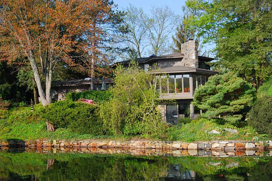 Custom designed Contemporary Lakefront home by renowned architect Eleanore Petterson, a student of Frank Lloyd Wright. This 6000 plus square foot home is a “beehive” design is built on a peninsula and has panoramic views from all sides. Situated on just under an acre this property has over 500 feet of Lake Frontage and outdoor access from all rooms on the Main Level and Lower Level to the bluestone patios and new boat dock on the water. The First Floor Master Bedroom Suite is a separate wing and includes his and hers dressing rooms, a full bath with a sunken tub and shower, and wonderful views from the Main Bedroom area with doors to a patio. The Entry Foyer has a tile floor and recessed lighting and creates a beautiful entry to the main rooms. There is a Bar Room with an icemaker, a sink and other built-ins perfect for entertaining. The hexagon shaped Dining Room has a wall of windows overlooking the beautiful landscaped property and the lake. The sleek Kitchen has granite counter tops, Gaggenau® ovens, Bosch® dishwasher, and a Wolf® 6 burner gas cook top, and a Dining Area with another huge window that brings the outside in. The adjacent Library is accessible from the Kitchen and the Hallway. Also on the First Level is an Office/ Bedroom and a full bath with a nearby outside entrance. The Powder Room is located off the Entry Foyer. The Second Floor has 2 king sized Bedrooms with spectacular views and they share a full tile bath. The Lower Level Rec Room has a wet bar, and a stone fireplace and opens to the lower level patios. Neighborhood Description A Brief History of Pines Lake. In 1924 Mr. Harry Harris and his partners, Max Berger and John Ackerman, now all deceased, formed the Pines Lake Corporation and started to purchase parcels of land that would ultimately become the lake bottom. Construction of the dam started in May of 1927 and was completed in October. In May of 1928 water overflowed the spillway for the first time. The lake is approximately 1 mile long and ½ mile wide. It covers 158 acres and has a shoreline of close to five miles. The primary source of water is Haycock Brook that originates east of Berdan Avenue, flows into Pancake Hollow (now Point) Reservoir, into Lionshead Lake and finally into Pines Lake. The Lake is 20 to 30 feet deep in the main channel. Natural springs and drainage from surrounding hills provide water to the lake. Soon after the dam was completed home construction began. However, due to the Great Depression of the 30’s and the shortage of fuel and construction materials during World War II, only 150 homes had been built by 1944. Many of the homes were built using logs from a local sawmill. The Pines Lake Association was formed to provide administrative services, recreational and social activities. Today there are approximately 770 homes within the defined geographical area of Pines Lake that are eligible for membership in the Pines Lake Association. Those of us who live at Pines Lake look upon it as an oasis surrounded by a growing township, which one-day may become a city.