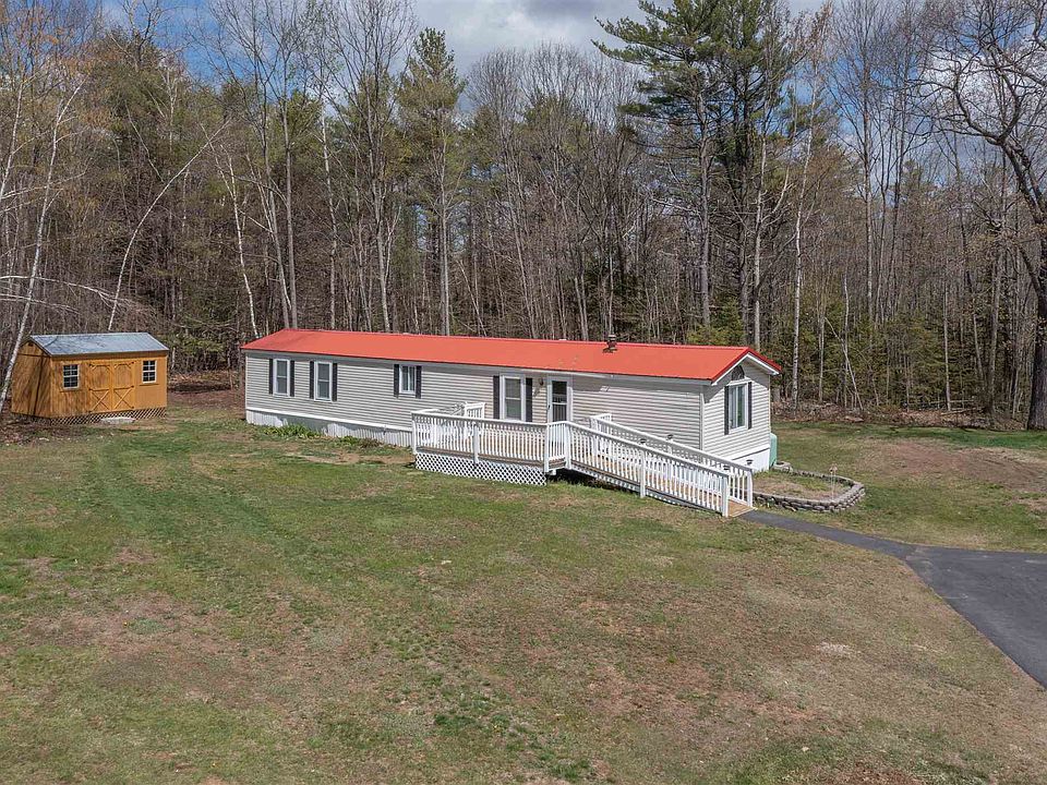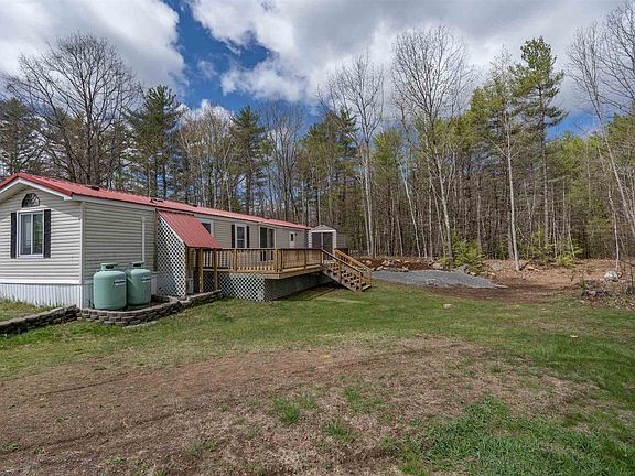 1988 Schultz 14x70, Two Bedroom, two full baths mobile home on a nice large private end lot. Vinyl sided with metal roof. Ramped front 10x16 deck with solar lights. Kitchen has large slider to the 12x34 back deck makes a nice space for relaxing or entertaining, Extra wide steps out to large yard. Newer 10x16 storage shed provides room for outdoor accessories. 2nd shed on deck for patio furniture storage. Close to all amenities that the Lakes Region has to offer. There was a freeze up, there is water damage. Walls and floors are damaged. Plumbing and Electrical repairs required.