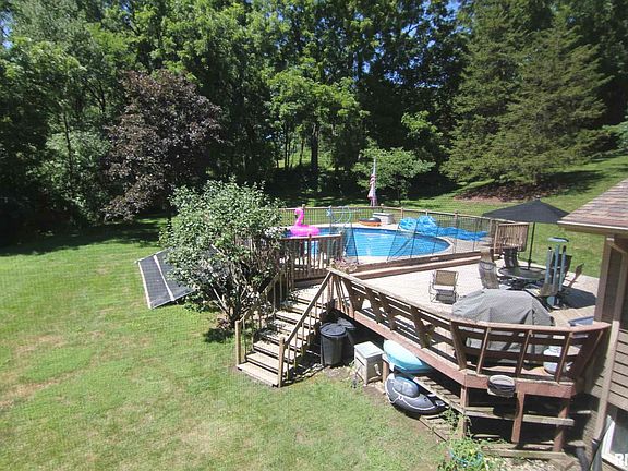 Relax on your deck by the above ground pool listening to the call of nature on your 1.85 acre lot. This one owner home is well cared for and spacious with both living and family rooms as well as a dining room and very large eat-in kitchen. 3 bedrooms up, one on the main floor and an egress window in the basement for possible finish. The screened porch off the master bedroom is a great spot for your morning coffee.