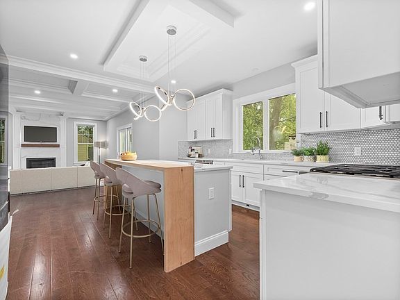 Beautiful new construction with all the bells n' whistles! This home has a great amount of living area - traditional but open floor plan on the main level with a large deck that is excellent for entertaining. The gourmet kitchen features SS Thermador appliances, high end quartz countertops & large island plus a sunny eat-in area. Family room has formal gas fireplace for cold days. Direct entry garage into a large custom built mudroom provides storage & convenience. The upper level boasts an oversized primary suite w/walk in closet & en-suite bath as well as a privacy deck overlooking the private backyard. Three additional generously sized bedrooms each w/en-suite baths. The third floor has additional bonus space perfect for one or two home office(s). The walkout lower level provides a 5th bedroom, gym area and large family room/entertainment area. Located on a desirable side street steps to the recently redone Newton highlands playground, tennis, T, highways & shopping area. Come visit
