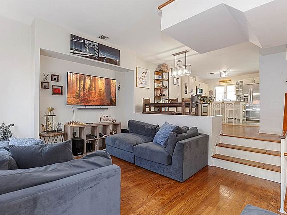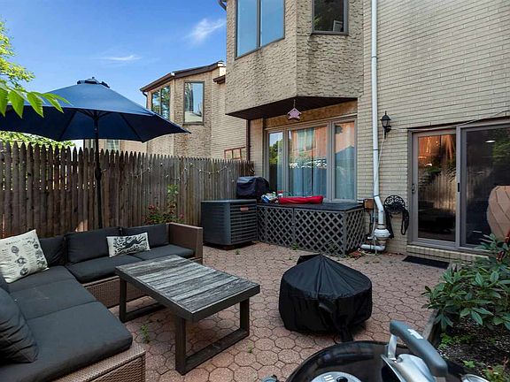 One family townhome bright and spacious 3 bedroom strategically nestled in Edgewater. Rarely available model features hardwood floors throughout, private bedroom on the first floor, fully renovated kitchen with S/S appliances and granite countertops, heated floors, separate dining room, sunken living room, beautiful landscaped terrace / backyard. Master bedroom features walk in closet, 2nd bedroom and full bathroom on same floor. Close to shopping, NYC transportation right outside your door! Recently renovated bathrooms, laundry room and new Samsung oversized W&D. New garage door lifted/upgraded for added storage. Upgraded California Closets in master bedroom. Wine cooler included. Central Vacuum system