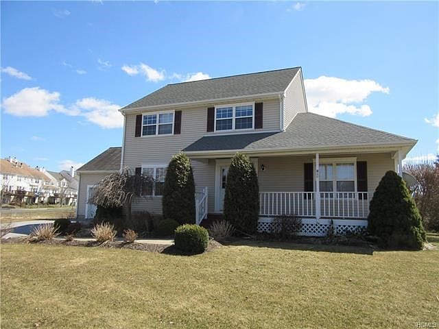 Light & Bright! Windows everywhere! Custom built, Rocking Chair Front Porch Colonial with pond views and 1st floor Master Bedroom Suite. Living Room & Dining Room provide great entertainment space. Spacious Family Room with wood burning fireplace and access to deck with retractable awning overlooking water. Kitchen with lots of cabinets and storage, granite countertops, recessed lighting plus conveniently located 1st floor laundry. Central Air and ceiling fans throughout. Master Suite has huge walk in closet and Bath with glass enclosed shower. 3 additional bedrooms including more than ample closet space. Finished Lower level with walk out to patio, generous storage with existing shelving and as a bonus, includes an air hockey table. Well maintained home with many improvements in the last 5 years including a new roof, painting, appliances, new water heater, etc. Move in by summer to enjoy the Community amenities including outdoor pool, tennis courts, clubhouse and more.