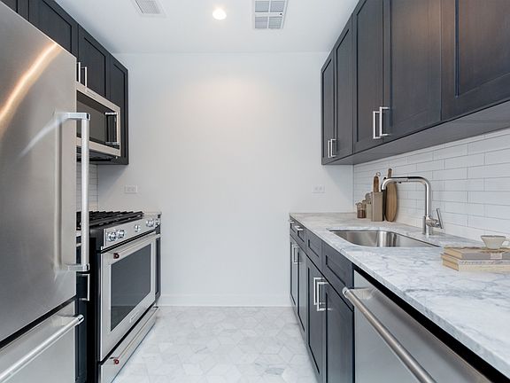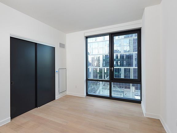 Cutting-edge, designer interiors feature extensive layouts, Canadian white oak floors, and floor to ceiling windows, generating an abundance of natural light. Modern kitchens have custom millwork, marble countertops and floors, walnut stained cabinetry and state-of-the-art stainless steel Kitchenaid appliances. All units contain Bosch washers and dryers, truly generous closet space, including a walk-in the Master bedrooms and over nine foot ceilings. Residents will also enjoy direct exposure to the Hudson River and panoramic city vistas.