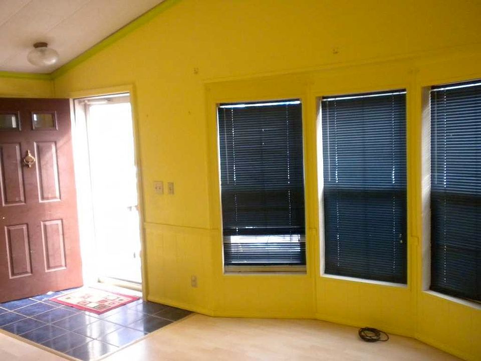 Welcome to this cheery doublewide set on a nice level lot that backs up to the woods in a quiet park. Land is owned by the park. Lot rental is $479. a month. Kitchen with island has stainless steel appliances and opens into the comfy LR with a cozy fireplace. Enjoy the cathedral ceilings and separate Laundry Room with a door to outside. Master Bath has a garden tub and separate shower. Fairly private backyard with fruit trees and a shed for storage. Lawn mower, snowblower, wheelbarrow and other tools are included in the sale. Bus to NYC in distance.
