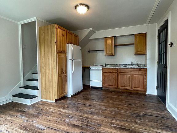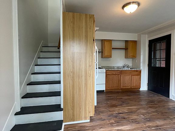 This apartment is located in the back of a Victorian house converted into an apartment building. It is one of 6 units and has a quaint cottage feel. This newly renovated apartment is a one bedroom, one shower room comfortable living space. The bedroom and shower room are upstairs while the kitchen & living area are downstairs. There is a quiet backyard that is a shared space for all tenants to enjoy. Street and parking lot space are available. This apartment is located conveniently near the Sheepskin trail for recreational enthusiasts. Renter is responsible for electric. No pets & smoking/vaping is only permitted outdoors.
