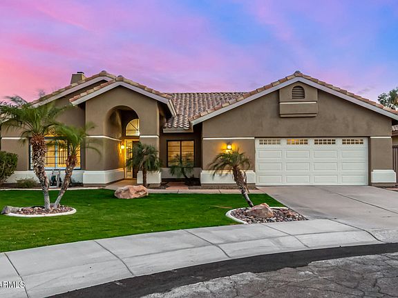 Enter the double-door main bedroom to find outdoor access and a lavish ensuite with dual vessel sinks, a soaking tub, a glass-enclosed shower, & a walk-in closet. 4th bedroom, with a French double-door, is ideal for an office. The outdoor oasis is an entertainer's delight! The spacious backyard promises year-round enjoyment with a sparkling pool, a covered patio, synthetic lawns, well-laid pavers, a built-in BBQ, a fire pit, a water feature, and a built-in seat. You will be near some top-rated public schools include BASIS Ahwatukee, BASIS Chandler, Great Hearts Academies - Archway Lincoln, Tempe Preparatory Academy, and Arizona College Prep High School. Kyrene School district is always one of the more coveted districts to be in! Come see it today