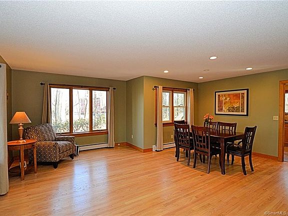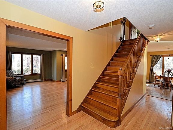 If you desire an Open Floor Plan don't miss seeing this Superbly Kept Colonial with a Contemporary Flair Desirable covered front porch is the perfect way to welcome guest or relax during the warmer months. Newly renovated eat-in kitchen was designed for both efficient cooking and entertaining. All newer stainless steel appliances, tile backsplash, breakfast bar, and tile flooring. Kitchen opens to the family room with vaulted ceiling, sky lights, floor to ceiling stone wood burning fireplace and a slider that leads to the 14x10 trex deck. Freshly re-finished oak hardwood enhances the foyer, living, and dining rooms. Large entry foyer 8x8 with plenty of closets. Up-dated First floor ½ bath also includes laundry hook-ups. The master bedroom has a unique vaulted ceiling, double closets and a divided full bath with new tile. Two additional bedrooms on the upper level and an updated main bath. Boiler is approximately 2 years old, 200 amp service, play scape included.