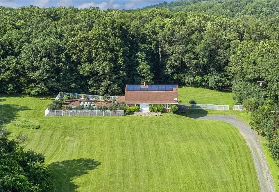 Serenity awaits at this beautiful 4 bedroom, 2.5 bath custom cape nestled on 5 acres in beautiful Warwick, NY. The main floor features a spacious living room with wood burning fireplace, a gorgeous rustic/modern kitchen, bedroom, full bath, office & 1/2 bath. The second floor has 3 additional bedrooms & a full bath. Step outside to your private oasis complete with a covered patio & gorgeous gunite inground pool surrounded by lush landscaping & breathtaking mountain views. Plenty of space for 2 cars in the attached garage w access to the unfinished basement. The property is equipped with solar panels which help reduce electricity costs by harnessing renewable energy from the sun. Large fenced in portion of the yard provides a multitude of uses & "invisible fence" also installed for the dog. Don't miss this perfect mix of privacy, charm, convenience & nature! Additional Information: ParkingFeatures:2 Car Attached,