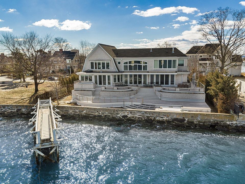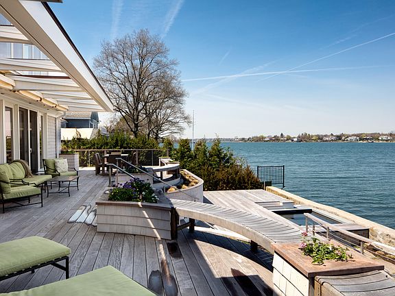 Spectacular waterfront contemporary colonial with exquisite panoramas of Greenwich Cove. Masterfully renovated ''smart'' home by Robert Dean Architects with walls of floor-to-ceiling windows and French doors. Sleek open floor plan with pocket doors affords flexibility of space for entertaining and daily living. Gorgeous Ortal fireplaces, spectacular white-and-stainless kitchen, sumptuous master suite. Options for three, four or five bedrooms making the home suitable for families, downsizers or weekend retreats. Extensive seaside decks with year-round hot tub. Professional landscaping, private dock. Perfect balance of personal privacy and the coveted sense of community in exclusive Lucas Point association. All town utilities. Every amenity. Coastal lifestyle, outstanding location