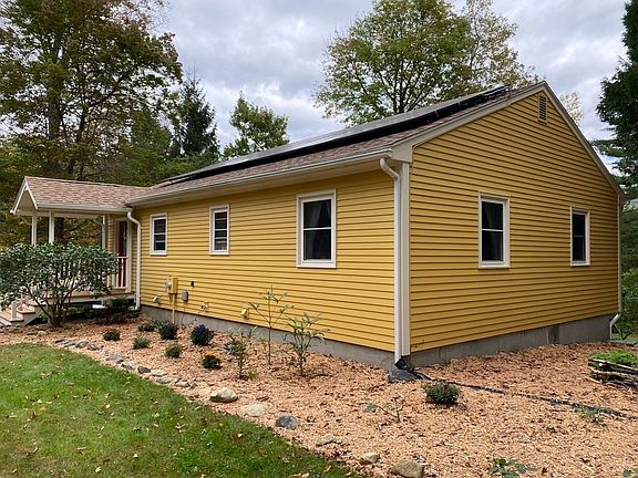 Impeccably maintained and renovated 3BD/1BA Ranch within walking distance of the Bridge of Flowers and Shelburne Falls village. This charming home has been transformed with new wood siding, new roof and garage door, roof-mounted solar array (owned), updated electric, tankless hot water, replacement windows, and so much more. The private backyard offers space for gardening and relaxation and includes a prepared walk-out area waiting for the next owners to complete the oversized patio or design and install a deck. The kitchen features updated cabinets, granite counters, newer appliances and opens to the dining area and main living space where you can enjoy seasonal views from the large east-facing picture window. The heated lower level is partially finished and has potential for additional living space. With a main level laundry and town water and sewer, this home is perfect for one-story, easy living. Quiet dead-end road. Showings begin 10/03, by appointment. This little gem won't last!