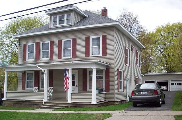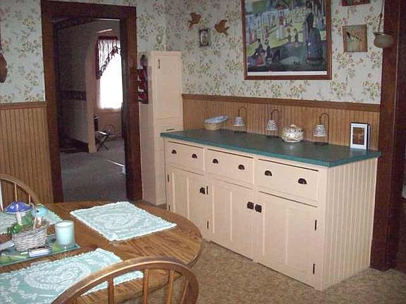 Spacious 4 Bedroom Home has a large eat-in Kitchen with many cabinets. Living room, Dining, Den, open staircase. polished Hardwood floors & natural wood work, (except for 2 rooms); throughout, , large full ventilated attic has dormers; Full open front porch. Home is in "move-in" condition; 5 stall garage (rental spaces?) nice sized yard for a large family.
