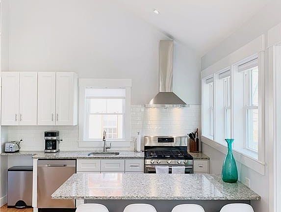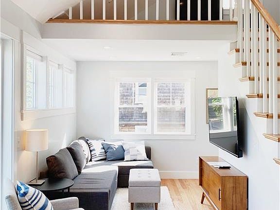 AVAILABLE JULY-AUGUST. Newly renovated one bed one bath second-floor condo with loft bed/office in two-family home on a quiet downtown side street, 5 min to the War College and 10 min to the NUWC gate. This 1800s house was just rebuilt to offer central air, modern appliances and furnishings, hardwood floors, granite counters, vaulted ceilings, memory foam mattresses, 4k TVs, laundry, keyless entry, a large west-facing deck with outdoor furniture and views of the sunset over the Newport Bridge, and lots of natural light. Its location provides immediate access on and off the bridge or rotary, quiet nights in a charming off-broadway neighborhood adjacent to the historic cemetery, short walks to the shops and restaurants of Broadway and Thames St and the waterfront along the harbor, and off-street parking.