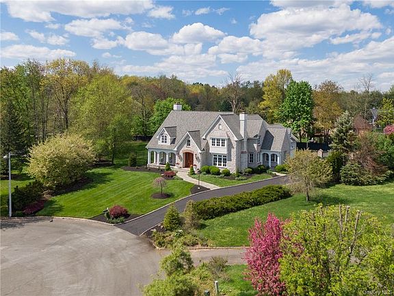 A Most Elegant and Majestic French Tudor Stone Center Hall Colonial 5 bedrooms 5 full bathrooms, 1 half bathroom with the option of installing the 6th full bathroom with the available pluming, property is sequestered on .98 acres of professionally landscaped property, dead center Cul De Sac location surrounded by graceful towering trees for a serene & totally private living experience in the sought after Sherwood Estates. This spectacular home offers the finest quality of materials fashioned into exceptional architectural details. Custom crown molding through out the home, abundance of natural light with 53 windows throughout the home. Beautiful large stairway to the entrance of the home with a custom Mahogany door. 9 foot ceilings on the 1st floor. Gorgeous oak/walnut/mahogany & imported Italian marble flooring w/palladium Kolbe windows & doors bring natural light into 6,500 square feet of a flowing floorplan. Guests are welcomed into a grand 18 foot foyer w/ a dramatic sweeping staircase & chandelier. An inviting gourmet kitchen w/top-shelf appliances is the focal point leading to a banquet-sized formal dining room w/fireplace & coffered ceiling, family room w/fireplace, exquisite formal living room, office & laundry mudroom & gorgeous sunroom lead to the ultimate in outdoor country club living w/custom pool enlarge concrete pool with attached spa, cabana, stone & granite fire pit, pavilion w/TV, 2 Two brand new central AC units and new driveway 7 months old, approximately 2,000 square feet of bluestone patio's, walkway's and stairs, full basketball court & more! Finished basement with a movie theater. Tremendous bonus room over the 3 car garage. This magnificent home is 30 minutes from NYC, 5 minutes from Manhattan Woods Golf Club & in the Blue Ribbon Pearl River School District! Check out the virtual tour for a stunning show. **Truly a 21st Century Stunning Lifestyle at its Best!