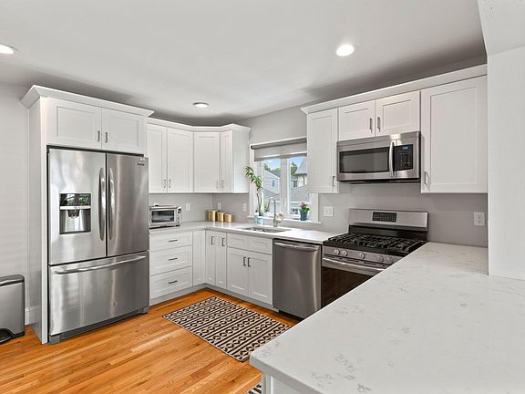 Discover this beautifully updated 3-bedroom, 1.5-bathroom unit in the heart of East Weymouth, ideally within walking distance to Jackson Square, Lawrence Pingree Elementary, and Weymouth Middle School. This home offers modern conveniences and elegant touches, including an updated kitchen with stainless steel appliances and the warmth of hardwood floors. Central AC ensures year-round comfort, and the in-unit laundry adds convenience. With ample parking, including four off-street spots and access to 2-car garage. A large private backyard featuring a patio and pergola is perfect for entertaining. Basement available for storage. Pets are negotiable. 1 unit building in a duplex. Available starting July 1st. 12-month lease. Requirements for move-in: good credit and income. Move costs: First Month's rent and One month's security deposit. Owner pays for water, Sewer, trash, landscaping and snow removal. Tenants pay for electricity and gas. 12 Month Lease Good credit and income and references.