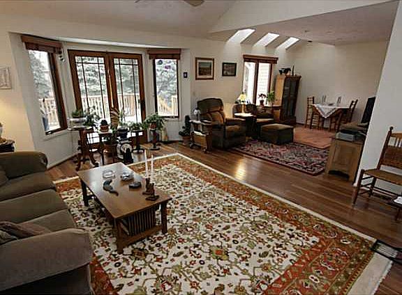 You'll love the open floor plan in this townhome! Newer hardwoods throughout the first floor! Spacious eat-in kitchen with new granite tops and newer refrigerator & dishwasher! Plenty of natural light beams through the skylights in the living room! Landing overlooks living room and makes a perfect office! Two spacious bedrooms on the second floor! Sliding door leads to rear private deck!