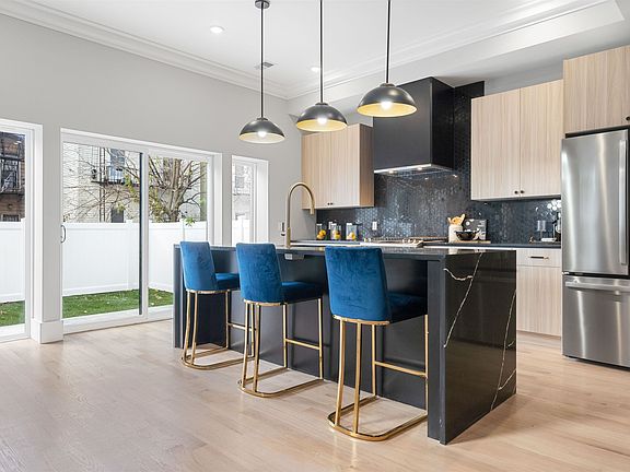 BRAND NEW PROFESSIONALLY DESIGNED with a Private Back Yard in the heart of Jersey CIty Heights - Take this opportunity to live on one of the most sought after street in The Historical Heights Arts District. Indulge in this impeccably designed brand new Duplex Condominium that boasts over 2,197 total square feet. As you walk through the front door, you are greeted with a separate formal entry foyer, down the hall is a beautifully designed marble inlay powder room. Just beyond the powder room is a separate home office which can be used as a 4th bedroom with a custom built in closet. The first floor of this unit also occupies a very spacious living space with a living room dining room combo and a modern kitchen that is beautifully designed with a large center waterfall island, black on trend quartz counter tops, full black marble backsplash, two tone high end cabinets. The kitchen also has an ample size separate pantry. Just beyond the kitchen is the private back yard that can be accessed with large sliding glass doors with built in speakers outdoors and inside. In addition, the first floor has 3 very large storage closets with custom built ins for all your storage needs. Walk up to the second floor where you have a great size primary bedroom with large windows that lets in abundant amount of natural light, very large walk in primary closet with custom closet system and a complete walled tiled bathroom with double vanity. There are two additional secondary bedrooms that share an enormous Jack and Jill bathroom that has a large double vanity with a separate shower and open shelving. Every closet in this unit is equipped with custom closet built ins. Other features include large size window where light fills the entire unit, gleaming oak hardwood floors, extra large crown and base moldings, in unit laundry with washer/dryer, 10 foot ceilings on both floors. Additionally, the buyer can also take advantage of Jersey City’s 5 Year ‘New Construction’ Tax Abatement. 21 Waverly will provide you with the incomparable opportunity to live in Modern Luxury within an urban redeveloping area such as the Riverview Art District of Jersey City Heights. You will be within steps from parks, cafes, shops, and restaurants along with public transportation like NJ transit, the light rail, and the NY/NJ PATH, which will get you into Manhattan in minutes.